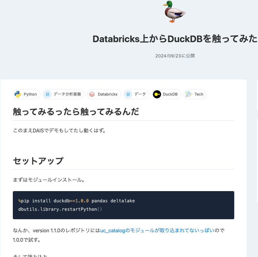 こちら、「Databricks上からDuckDB触ってみた」どうぞー!