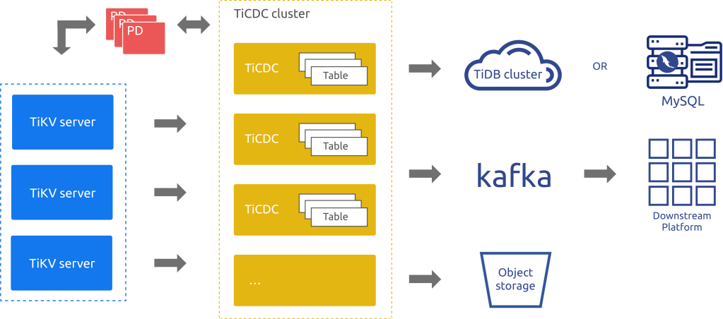 詳しくはここを見ていただければと思いますが、名前の通りTiDBで発生したデータをChange Data Captureで他のシステムと連携するためのサービスです。MySQLや、PostgreSQLで言えばレプリケーションと言われているようなことがTiDBでも実現できる事になります。