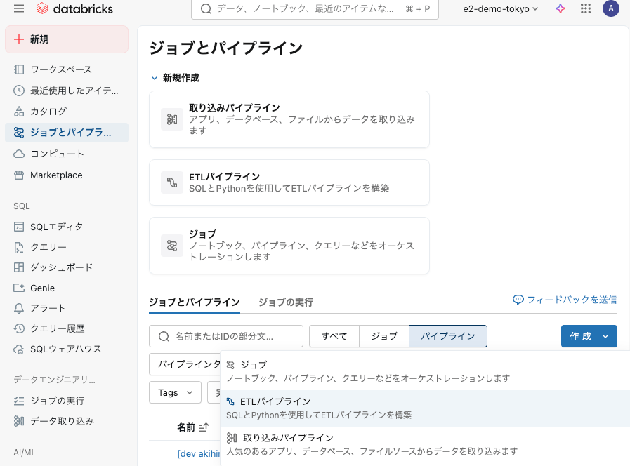 Databricks上で「ジョブとパイプライン」から、「ETLパイプライン」を作成!