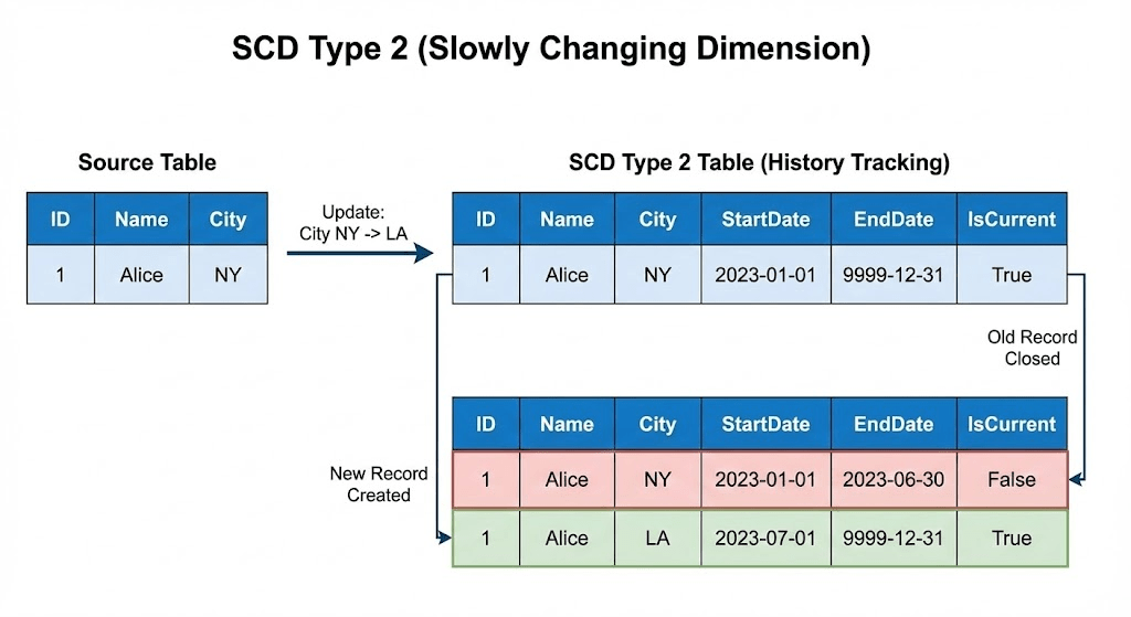 加えてここでSCD Type 2の設定もここで行っています。SCD Type 2とはテーブルの変更履歴を保存する手法です。