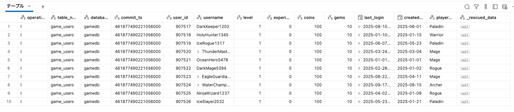 commit-tsはオプションですが後ほどSCD Type 2などを行う際に重要になりますので出力しています。commit-tsの仕様はこちらにあります